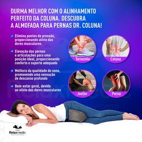 O conforto que você merece na hora de dormir! A Almofada para Pernas da Linha Dr Coluna alinha pernas e joelhos para posição adequada ao dormir, elimina os pontos de pressão e auxilia na redução de dores musculares.