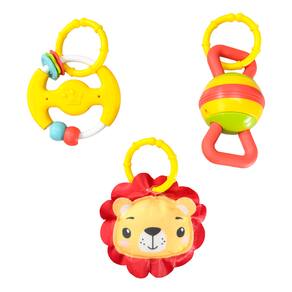 Feito com materiais seguros e atóxicos, oferece uma superfície macia, acolhedora e confortável, garantindo o bem-estar do bebê a cada brincadeira. O bichinho de pelúcia emite sons suaves, enquanto os outros dois brinquedos proporcionam estímulo sensorial e ajudam a aliviar o desconforto durante a fase de dentição.