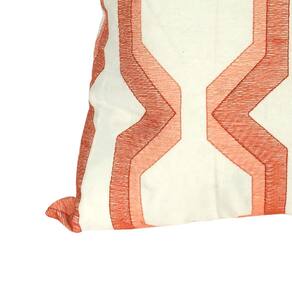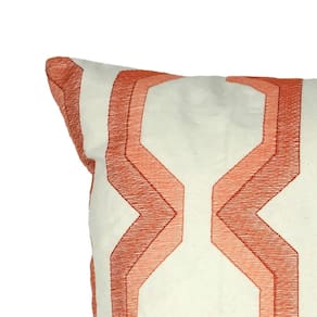 Almofada de algodão contemporânea Benjara com bordado geométrico, vermelho e branco.