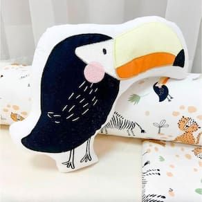 Almofada Bordada Tucano Felice Safari Um complemento para deixar o quartinho de seu bebê muito mais charmoso, a Almofada Tucano Felice Safari é perfeita para decorar e divertir Almofada com lindo bordado de tucano da coleção Felice Safari, em tecido 100% algodão e com enchimento anti-alérgico em manta acrílica. Ean: 7908419127611
