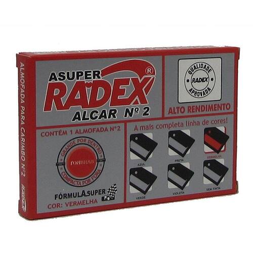 Sobre almofadas para carimbo alcar número 2. As almofadas para carimbo Radex tem alto rendimento e fabricado com tinta de longa duração. Recarregável com tinta para carimbo Radex.
