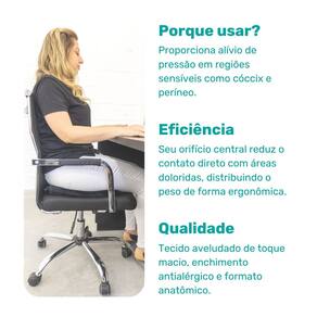 Indicada para pessoas em recuperação pós-cirúrgica, com hemorroidas, dores no cóccix, fissuras, entre outros incômodos na região central do assento.
