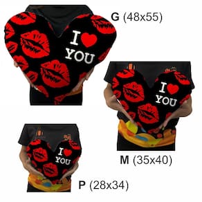 DESCRIÇÃO DO PRODUTO1. Almofadas no formato de coração em 3 tamanhos: Tamanho P 28x34cm, tamanho M 35x40cm e tamanho G 48x55cm;2. Impressão / estamparia de alta qualidade, em tecido pelúcia, super macio, antialérgico e muito sedoso.