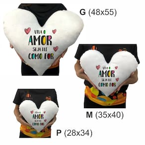 Almofada Coração Pelúcia Viva o Amor Seja Ele Como For Namorados Tamanho:G