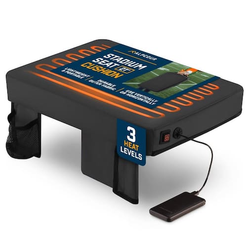 - Conforto extra espesso – Esta almofada de assento aquecida mede 53 x 38 x 7,6 cm, oferecendo o máximo de conforto para arquibancadas rígidas e assentos de estádio. Pode ser utilizado vertical ou horizontalmente para um assento mais amplo.