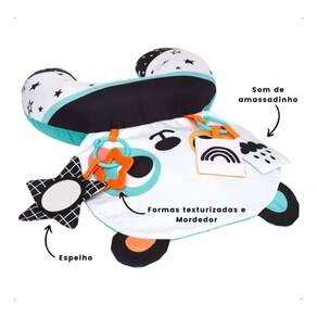 Contém mordedores e argolas texturizada;- Pelúcia e painel colorido com barulho de amassadinhos;- Para o bebê brincar de bruços;- Os brinquedinhos também podem ser removidos e pendurados no carrinho ou berço do bebê;- Tipo de tecido: 85% poliéster 8% polipropileno 3% acrilonitrila butadieno estireno, 1% acetato-vinílo de etileno, 2% polietileno e 1% água;CARACTERISTICAS E ESPECIFICAÇÕES;- Design ergonômico- Figura de animais na almofada- 3 Mordedores- 1 bichinho de pelúcia , Abelha- Com som de amassadinho- argolas texturizadas- O seu formato de meia lua é super confortável para se apoiar de bruços sobre a almofada macia e brincar confortavelmente, nessa posição a coordenação motora será estimulada, pois ele terá ao seu alcance diversos brinquedinhos como mordedor, argolas texturizadas, abelhinhas com barulho de amassadinho, cores e estampas vibrantes, além de um painel super colorido com bichinhos e barulho de amassadinho para o bebê tocar.