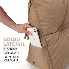 Bolsos laterais funcionais: espaço para guardar celular ou controle remoto, com saída para carregador que facilita seu uso no dia a dia.
