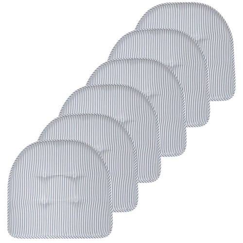 Almofada de cadeira Sweet Home Collection, almofadas de espuma viscoelástica, deslizante, tufada, capa de assento de borracha antiderrapante em forma de U, 17 polegadas x 16", 6 unidades (pacote com 1), azul listrado - mime-se - A espuma viscoelástica é o principal tipo de preenchimento para qualquer almofada confortável existente. Seja um travesseiro, protetor de colchão, repouso na cama ou almofada de cadeira, todos sabem que a espuma viscoelástica é líder em materiais confortáveis. Ao longo dos anos, experimentamos diferentes construções, ouvimos seus comentários e criamos uma almofada de cadeira que é tão macia e agradável; essencial para todas as suas cadeiras. - Suporte antiderrapante sem amarração — Entendemos a frustração causada pelas almofadas das cadeiras quando elas não permanecem no lugar. Até as almofadas de cadeira com gravatas ainda se movem. Uma das qualidades mais importantes de uma almofada de cadeira é a capacidade de permanecer no lugar com o uso frequente. Por meio de pesquisa e desenvolvimento, criamos a melhor maneira de manter nossas almofadas de cadeira grudadas em suas cadeiras como cola (sem cola) - onde elas pertencem. Compre um pacote de 2, 4 pacotes, 6 ou 12 pacotes hoje para colocar uma almofada de cadeira confortável e aconchegante em todas as suas cadeiras de uma vez por todas. - Ajuste perfeito para qualquer cadeira — sente-se confortavelmente por muitos anos! Nossas almofadas de cadeira são projetadas para caber em todas as cadeiras. Essas almofadas são em forma de “U”, ou a frente é quadrada com costas arredondadas e medem 17" x 16". Essas dimensões são perfeitas para quase todas as salas de jantar, salas de estar, salas de jogos, quartos e até cadeiras externas (não recomendamos deixar essas almofadas do lado de fora, mas podem ser usadas em cadeiras externas e trazidas quando estiverem prontas). - DESIGN VERSÁTIL DE APARÊNCIA DELICIOSA — A capa dessas almofadas utiliza um design tufado que se encaixa perfeitamente em qualquer decoração. O design tufado é um padrão elegante e exclusivo que fica lindo em qualquer cadeira. Convenientemente disponível em mais de 30 cores e estampas, escolha uma que combine diretamente com sua cadeira ou outra cor para realçar a cadeira. Essas almofadas de cadeira estão disponíveis em uma variedade de cores e designs. - DURÁVEL, DURADOURO, FÁCIL DE CUIDAR - Para nós, cada ponto é importante. Queremos que você se sente nas almofadas de cadeira tufadas de espuma viscoelástica em forma de U da Sweet Home Collection para as cadeiras e cadeiras que estão por vir! Resistência e durabilidade embutidas em cada centímetro. Ainda por cima, essas almofadas são laváveis na máquina! Lave à máquina com água fria, não use alvejante, não passe a ferro, apenas seque na secadora sem calor e as almofadas da cadeira ficarão como novas. Sente-se com conforto e relaxamento, sente-se com Sweet Home Collection.