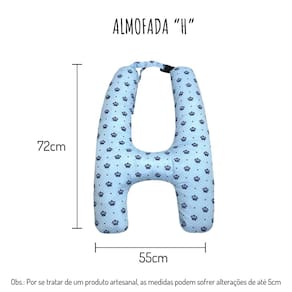 Almofada para viagem Esta almofada tem um design em forma de h que reduz a largura da parte de apoio do pescoço e permite que a cabeça descanse confortavelmente em ambos os lados, acomoda o pescoço de forma correta mesmo durante o sono oferecendo maior conforto e comodidade para as viagens. Esse apoio é ideal para viagens longas de carro, de avião ou cochilos em casa e pode ser Utilizado por crianças e por adultos, confeccionada com fibras de silicone macia e uma alça ajustável para prender no encosto de cabeça do carro para que fique fixa, perdendo o risco de escorregar. Acompanha uma almofada que pode ser Utilizado como protetora de queixo ou de pescoço para agregar ainda mais conforto. Acompanha: 01 almofada h de 72cm x 55cm medidas aproximadas 01 almofada para pescoço ou queixo com tecido adesivo Composição: Tecido: 80% algodão e 20% poliéster Enchimento: fibra de silicone macia 100% poliéster Obs.: a foto é ilustrativa. O produto pode sofrer diferenças na tonalidade de cor, dependendo da configuração da tela do seu celular ou computador brilho, contraste etc. os demais itens compostos no cenário da foto não estão inclusos.