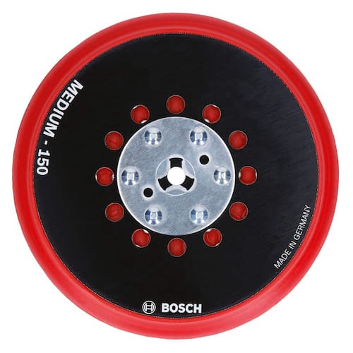 BOSCH RSM6045 Almofada de lixamento com vários furos médios de gancho e laço - Design de disco de lixamento com vários furos – otimizado para maior extração de poeira e compatível com uma ampla variedade de discos abrasivos - Pastilhas médias – ideais para lixar entre dois revestimentos, lixamento fino e trabalhos de reparo de laca - Design profissional – possui placa de suporte reforçada com fibra de vidro e placa de acionamento de alumínio perfurada e rebitada com precisão - Fabricação robusta – proporciona desempenho superior e longa vida útil - Construído para lixadeira de vários furos – projetado para uso com discos abrasivos e capôs de polimento para as 15 cm. Lixadeira de órbita aleatória Bosch GET75-6 de modo duplo