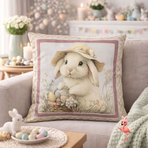 Perfeita para decorar sofas poltronas camas ou cantinhos tematicos a almofada Memorias Coelha e ideal para criar composicoes cheias de significado acolhimento e emocao durante a Pascoa.