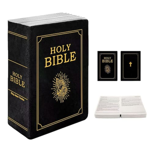 Almofada de pelúcia em forma de livro da Bíblia Sagrada que pode ser aberta para crianças