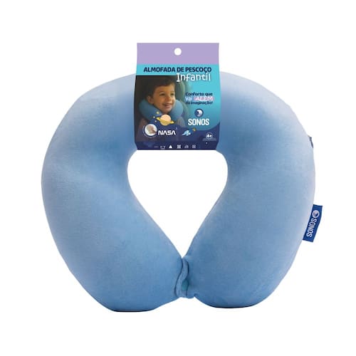 - Modelo: Almofada de Pescoço Infantil Sonos - Idade recomendada: A partir de 4 anos - Tamanho: 28 x 50 x 9 cm (altura x largura x profundidade) - Peso líquido: 0,230 kg - Peso bruto: 0,280 kg - Enchimento: Espuma viscoelástica (NASA) - Capa: Tecido macio respirável - Tipo de embalagem: Pacote plástico personalizado - EAN Azul: 7898559703847 - EAN Lilás: 7898559703854 - Origem: Indústria Brasileira - Marca: Sonos