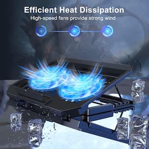 -?Ventiladores de eficiência dupla?O suporte de resfriamento do laptop tem dois ventiladores grandes de 5 polegadas (12,8 cm), volume do ventilador: 5-15 dB, o ventilador é equo com luzes LED azuis, o brilho dos grânulos da lâmpada: 10 LM, tensão de trabalho: 5 V, corrente: 0,22 A, comprimento do cabo USB: 60 cm, a velocidade é livremente ajustável em 800-2000 RPM.