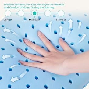 O pequeno travesseiro de espuma viscoelástica é leve e vem com um estojo de transporte para mantê-lo limpo.