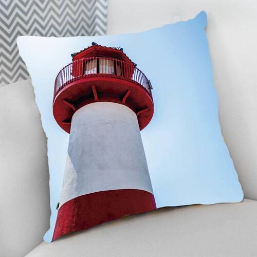 Almofada Decorativa Cheia C/ Zíper 25x25 Cm Náutico Oceania Praia Mar Estampas Faról Vermelho