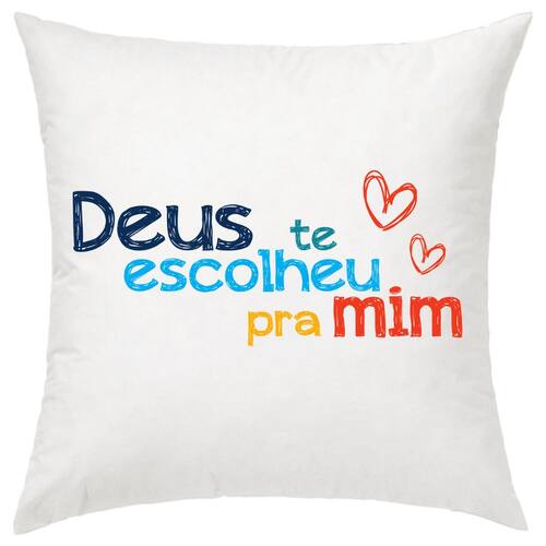 Almofada branca 30 x 30 cm em tecido Oxford 100% poliéster, estampa a toque zero em ambos os lados. Não desbota e não mancha. Zíper de Nylon e enchimento em fibra siliconada costurado em TNT. Estampas exclusivas EVANGELIZE.