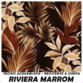 É confeccionada com tecido Acquablock, que é resistente à água e à exposição solar,