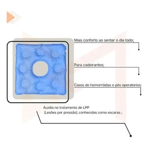 Indicada para aliviar a pressão sobre as nádegas e, também, para melhorar o conforto em cadeiras de escritório ou de quem fica sentado muito tempo.