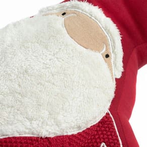 A Almofada Santa Claus é confeccionada em 100% algodão e seu enchimento é 100% poliéster.