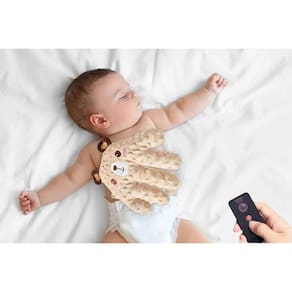 Almofada com vibração suave que imita o toque dos pais, proporcionando conforto no momento de descanso.