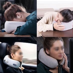 Almofada de pescoço + função de massagem: Este produto suporta a combinação de almofada do pescoço e função massageadora para eliminar a fadiga do seu dia e deixar seu pescoço livre das tensões. Deixe suas viagens mais relaxantes com esta Almofada Prática e portátil. Massagem bidirecional, possui 2 pontos rotativos de massagem. Bateria com armazenamento de energia e cabo USB para carregar. Luz Infra Vermelha que auxilia no relaxamento. Este produto é pequeno e leve, feito em veludo e espuma interna em viscoelástico ele não amassa e não deforma. Para que você possa relaxar e se divertir a qualquer hora, em qualquer lugar. É pequeno e leve, com três Níveis de velocidade, adequado para todos os tipos de pessoas. Produto feito com material de alta qualidade, ótimo para o uso no dia a dia, usar no carro, no trabalho, nos intervalos das aulas. E também é um excelente presente para seus parentes, amigos e funcionários. Especificações: Tecido do Apoio: Veludo de dupla camada Material do Núcleo do travesseiro: espuma de viscoelástico Tempo ideal de massagem: cerca de 10 minutos Capacidade da Bateria: 2.000mah. Bateria de lítio interna Voltagem: 5.0v Potência: 3.7w Vida útil da Bateria: Aprox. 2.500 cargas. Tempo de carregamento completo: 2 horas Partes aplicáveis: Pescoço Tamanho do produto aprox. : 26x24x10 cm Tamanho Embalagem: 29x27x12cm Capa Removível para Lavagem Com Fechamento em Ziper. Cuidado Com A Retirada da Capa da Almofada para não danificar. Material: Pano De Veludo Cor: Cinza e Rosa O Pacote Inclui: 1 x Almofada Massageadora 1 x Cabo de Carregamento USB 1 x Manual Obs: 3 meses de garantia contra defeito de fabricação 847g