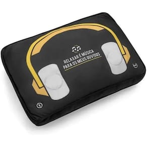 ""Relaxar é música para os meus ouvidos"" E não é que nós levamos isso ao pé da letra? Por isso, criamos esta almofada massageadora com speaker. Enquanto relaxa com uma massagem, você pode ouvir as suas músicas preferidas e aproveitar muito mais o tempo. Afinal, o tempo é precioso e passa rápido. São três níveis diferentes de intensidade pra você relaxar com as músicas que mais gosta. Além de conforto, a almofada é decorativa com a estampa de um fone de ouvido. Bem apropriado, né? Vai dizer que não é um presentão? Quem ganhar, vai amar!