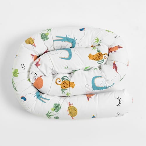 A Almofada Minhocão - Selva é o toque de carinho e proteção que transforma o cantinho do bebê em um espaço ainda mais acolhedor. Feita com capa externa em 100% algodão, ela é macia ao toque e perfeita para a pele sensível dos pequenos.