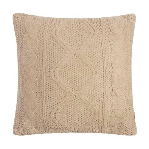 A Almofada Nido é confeccionada em 100% algodão, com zíper e enchimento. O tricô tem toque confortável e seu entremeio forma detalhes de tranças e geometrismo em alto relevo.