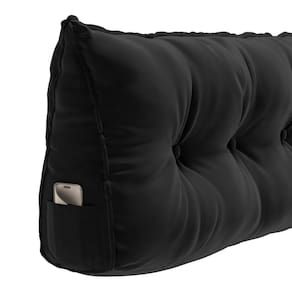 Almofada Para Cabeceira Encosto Apoio Lombar Spot 195cm Com Porta Celular Veludo - Abmaza Cor Preto