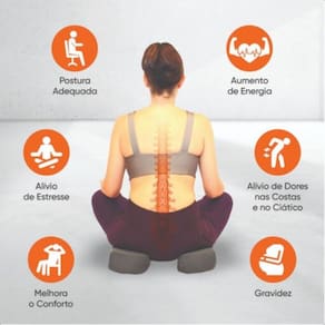 Proporciona excelente conforto e bem-estar para quem sofre de dores na região do cóccix. Indicada como auxílio para manter a postura correta ao sentar. Desenvolvido com espuma 100% de poliuretano e capa 100% poliéster.