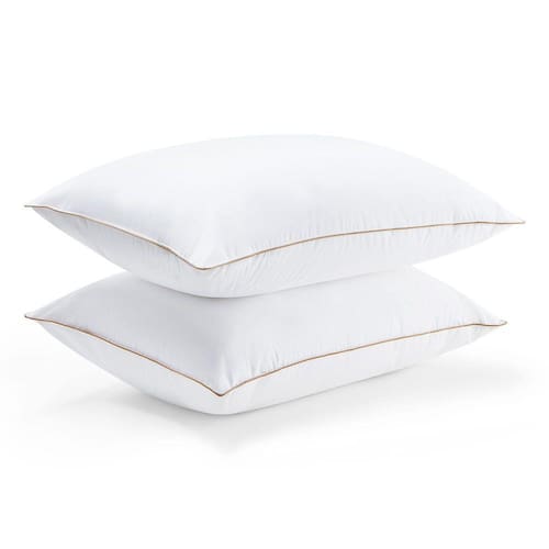Almofadas de penas de ganso e poliéster puredown®, travesseiros de cama premium médios a firmes para dormir, travesseiros luxuosos com capa impermeável, 1 pacote, tamanho padrão, 20 x 26 polegadas