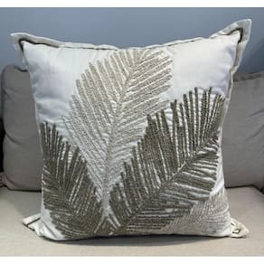 Almofada sarja 60x60 c/bord boucle folhagem bege