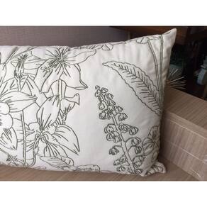 Almofada sarja Bege bordado fino pincel Verde 35 x 52 cm