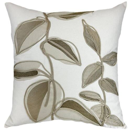 Almofada Sarja Cru 52X52 Bord Soutache Folhas Cru