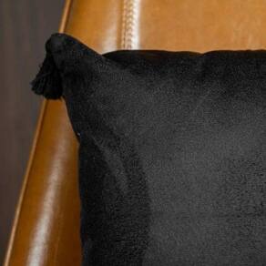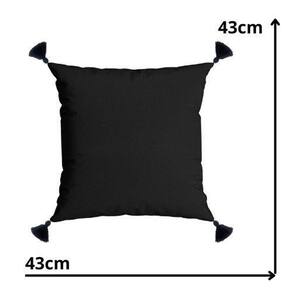 Tamanho: 43 x43 cm Cor: Preta Tecido: Velveteen Forma: Quadrada Detalhes: Tassel nas laterais Pompom Fecho: Zíper invisível para fácil troca e manutenção Origem: Fabricado com amor no Brasil