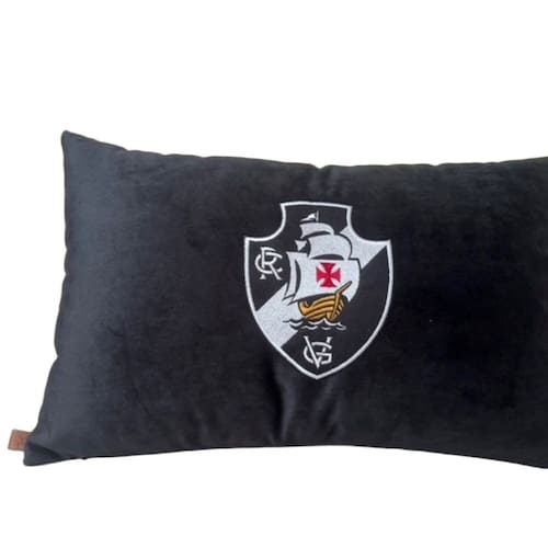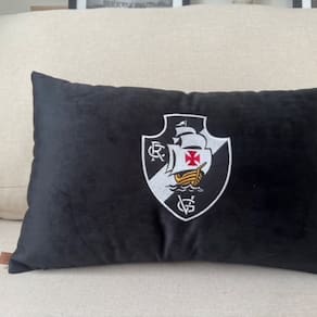 Almofada Veludo Rineira Bordada Vasco da Gama 50x30cm. com Enchimento Preto