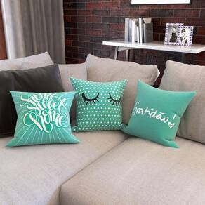 Almofadas Azul Turquesa Gratidão Home Sweet Home Para Sofá 40x40 - Novadecora Decorar sua casa com lindas Almofadas é aliar conforto e personalidade. E não existe sensação melhor do que poder chegar em casa depois de um dia cansativo de trabalho e curtir o aconchego do nosso lar. E por falar em aconchego, um item que transmite muito bem isso são as Almofadas Decorativas que você encontra na Novadecora. Se você é daqueles que adora decoração e gosta de deixar a sua casa com a sua personalidade, aqui na Novadecora é o lugar ideal para encontrar as almofadas mais lindas, dos mais variados estilos. Kit Com 3 Almofadas Decorativas em impressão digital com estampa exclusiva frente e verso TECIDO Capa confeccionada em tecido Oxford 100% poliéster, um tecido de ótima qualidade e durabilidade. O Oxford proporciona mais conforto e um toque agradável, além das cores ficarem mais vivas deixando seu ambiente mais decorado. Características e especificações: Marca: Novadecora Almofada já cheia Pronta para uso Almofada lavável - sem perder a qualidade e impressão Zíper invisível Dimensões lxa 40x40 cm É produto personalizado: Sim Conteúdo da embalagem 3 almofadas com enchimentos Importante sobre lavagem: - Lavar manualmente com sabão neutro - Temperatura máxima de lavagem 40°C. - Não usar alvejante. - Secar a sombra. - Temperatura máxima de base do ferro 110°C. - Não limpar a seco. : Três meses contra defeitos de fabricação. As cores das estampas podem variar de acordo com a calibração do seu monitor. AVISO: Não nos responsabilizaremos pela diferença de cores em caso de pedidos feitos separadamente, no caso produzidos em lotes diferentes. Marca: Novadecora Ean: 6015246334301