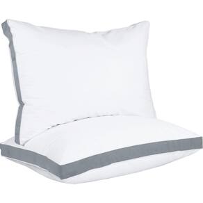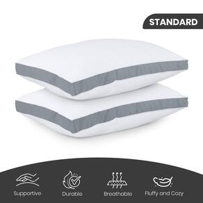 Dê ao seu quarto uma sensação luxuosa sem comprometer a qualidade com nossas almofadas de reforço de qualidade premium. Borda reforçada de 5 cm e uma forma resistente. Se você dorme de lado, dorme frontal ou traseiro, oferecemos uma solução para fornecer o nível de conforto perfeito que você estava procurando. O suporte adequado é a chave para se entregar ao relaxamento que você merece ao terminar o seu dia e nossos travesseiros de cama são a única solução. Cada um dos nossos travesseiros é cuidadosamente projetado para maximizar o seu potencial de conforto. Lavar a seco apenas para melhores resultados dá ao seu quarto um visual elegante. Observação: Aguarde 48 a 72 horas para que o travesseiro se expanda totalmente. Você também pode pressionar o travesseiro algumas vezes para acelerar a expansão. Se seus travesseiros ainda não se expandirem, use os seguintes métodos para levantá-los: 1. Coloque os travesseiros na secadora com 2 bolas de tênis: comece colocando seu travesseiro na secadora com 2 bolas de tênis (de preferência embrulhadas em um pano ou meias separadamente). A bola de tênis vai bater no travesseiro, afofando o enchimento. Secar em temperatura baixa por uma hora para garantir que seu travesseiro fique mais fofo e macio. 2. Deixe o travesseiro ao sol: ao colocar as almofadas ao sol por algumas horas em um dia claro irá evaporar a umidade que se acumula durante a noite com seu uso e os travesseiros vão afofar ao longo do dia. Você também pode pendurar as almofadas do lado de fora em uma linha de roupas. - Almofadas de cama com reforço – Conjunto de 2 travesseiros de cama com reforço cinza com debrum branco e costura dupla que dá uma aparência sofisticada aos travesseiros e também melhora a durabilidade - Tamanho padrão – cada travesseiro oferece suporte adequado para sua cabeça, pescoço e ombros. - Enchimento de fibra de poliéster – O enchimento de fibra de poliéster premium utilizado garante uma longa noite de sono sem interrupção. - Escolha ideal – para quem dorme de lado, barriga e costas, pois oferece o máximo de conforto para todas as posições de dormir. - Tecido macio e durável – Nossos travesseiros são feitos com um tecido de mistura de algodão de qualidade premium para melhorar ainda mais sua sensação e conforto. - Instruções de cuidado: recomenda-se limpar o travesseiro ou lavar o tecido à mão