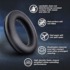 Capa. REAL Lambskin Leather Ear Pads: Oferece sensação luxuosa, macia e legal no contato com a pele. Boa Durabilidade: A pele de cordeiro não se deteriora e se deteriora pelo contato com suor e óleo de pele. As costuras são costuradas por roscas e não se abrem ao longo do tempo. Garantia de um ano. Material respirável: Esta pele de cordeiro l é porosa, permite a circulação do ar e garante sensação legal para o uso prolongado do fone de ouvido. Excelente Cancelamento de ruído: A almofada usa espuma de alta densidade para garantir uma boa vedação para cancelamento de ruído e desempenho sonoro. Fácil instalação: Todas as flanges de montagem do earpad são cortadas pela máquina de estampagem com dimensões precisas, oferecendo um encaixe consistente aos fones de ouvido. Uma pequena ferramenta está incluída no pacote para auxiliar a instalação.