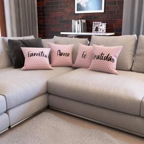 Almofadas Decorativas Rosa Decorativas Família, Amor, Fé e Gratidão Para Sofá 40x40 - Novadecora Decorar sua casa com lindas Almofadas é aliar conforto e personalidade. E não existe sensação melhor do que poder chegar em casa depois de um dia cansativo de trabalho e curtir o aconchego do nosso lar. E por falar em aconchego, um item que transmite muito bem isso são as Almofadas Decorativas que você encontra na Novadecora. Se você é daqueles que adora decoração e gosta de deixar a sua casa com a sua personalidade, aqui na Novadecora é o lugar ideal para encontrar as almofadas mais lindas, dos mais variados estilos. Kit Com 4 Almofadas Decorativas em impressão digital com estampa exclusiva frente e verso TECIDO Capa confeccionada em tecido Oxford 100% poliéster, um tecido de ótima qualidade e durabilidade. O Oxford proporciona mais conforto e um toque agradável, além das cores ficarem mais vivas deixando seu ambiente mais decorado. Características e especificações: Marca: Novadecora Almofada já cheia Pronta para uso Almofada lavável - sem perder a qualidade e impressão Zíper invisível Dimensões lxa 40x40 cm É produto personalizado: Sim Conteúdo da embalagem 4 almofadas com enchimentos Importante sobre lavagem: - Lavar manualmente com sabão neutro - Temperatura máxima de lavagem 40°C. - Não usar alvejante. - Secar a sombra. - Temperatura máxima de base do ferro 110°C. - Não limpar a seco. : Três meses contra defeitos de fabricação. As cores das estampas podem variar de acordo com a calibração do seu monitor. AVISO: Não nos responsabilizaremos pela diferença de cores em caso de pedidos feitos separadamente, no caso produzidos em lotes diferentes. Marca: Novadecora Ean: 6015246341347