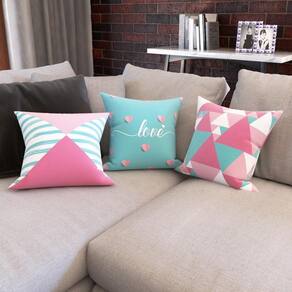 Almofadas Decorativas Rosa e Azul Love Geometricas Para Sofá 40x40 - Novadecora Decorar sua casa com lindas Almofadas é aliar conforto e personalidade. E não existe sensação melhor do que poder chegar em casa depois de um dia cansativo de trabalho e curtir o aconchego do nosso lar. E por falar em aconchego, um item que transmite muito bem isso são as Almofadas Decorativas que você encontra na Novadecora. Se você é daqueles que adora decoração e gosta de deixar a sua casa com a sua personalidade, aqui na Novadecora é o lugar ideal para encontrar as almofadas mais lindas, dos mais variados estilos. Kit Com 3 Almofadas Decorativas em impressão digital com estampa exclusiva frente e verso TECIDO Capa confeccionada em tecido Oxford 100% poliéster, um tecido de ótima qualidade e durabilidade. O Oxford proporciona mais conforto e um toque agradável, além das cores ficarem mais vivas deixando seu ambiente mais decorado. Características e especificações: Marca: Novadecora Almofada já cheia Pronta para uso Almofada lavável - sem perder a qualidade e impressão Zíper invisível Dimensões lxa 40x40 cm É produto personalizado: Sim Conteúdo da embalagem 3 almofadas com enchimentos Importante sobre lavagem: - Lavar manualmente com sabão neutro - Temperatura máxima de lavagem 40°C. - Não usar alvejante. - Secar a sombra. - Temperatura máxima de base do ferro 110°C. - Não limpar a seco. : Três meses contra defeitos de fabricação. As cores das estampas podem variar de acordo com a calibração do seu monitor. AVISO: Não nos responsabilizaremos pela diferença de cores em caso de pedidos feitos separadamente, no caso produzidos em lotes diferentes. Marca: Novadecora Ean: 6015246334356