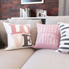 Almofadas Decorativas Rosa Love Gratidão Para Sofá 40X40 Decorar sua casa com lindas Almofadas é aliar conforto e personalidade. E não existe sensação melhor do que poder chegar em casa depois de um dia cansativo de trabalho e curtir o aconchego do nosso lar. E por falar em aconchego, um item que transmite muito bem isso são as Almofadas Decorativas que você encontra na Novadecora. Se você é daqueles que adora decoração e gosta de deixar a sua casa com a sua personalidade, aqui na Novadecora é o lugar ideal para encontrar as almofadas mais lindas, dos mais variados estilos. Kit Com 4 Almofadas Decorativas em impressão digital com estampa exclusiva frente e verso Tecido Capa confeccionada em tecido oxford 100% poliéster, um tecido de ótima qualidade e durabilidade. O oxford proporciona mais conforto e um toque agradável, além das cores ficarem mais vivas deixando seu ambiente mais decorado. Características e especificações: Marca: novadecora Tecido: oxford Almofada já cheia pronta para uso Fibra siliconizada anti-alérgica e anti-ácaro com forro em tnt Almofada lavável - sem perder a qualidade e impressão Zíper invisível Dimensões lxa 40x40 cm Conteúdo da embalagem 4 almofadas com enchimentos - Rosa Importante sobre lavagem: - Lavar manualmente com sabão neutro - Temperatura máxima de lavagem 40°C. - Não usar alvejante. - Secar a sombra. - Temperatura máxima de base do ferro 110°C. - Não limpar a seco. : Três meses contra defeitos de fabricação. As cores das estampas podem variar de acordo com a calibração do seu monitor. AVISO: Não nos responsabilizaremos pela diferença de cores em caso de pedidos feitos separadamente, no caso produzidos em lotes diferentes. Agradecemos a visita e boas compras Marca: Novadecora Ean: 6015246329390