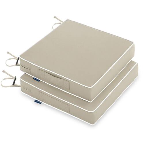 Tamanho: o pacote inclui 2 peças de almofadas de cadeira externa de 56 cm L x 56 cm P x 7,6 cm. Antes de fazer o pedido, meça as dimensões da área de assento do seu móvel com precisão. - Tamanho: o pacote inclui 2 peças de almofadas de cadeira externa de 56 cm L x 56 cm P x 7,6 cm. Antes de fazer o pedido, meça as dimensões da área de assento do seu móvel com precisão. - Excelente solidez da cor à prova d'água: nossas capas de almofada de assento ao ar livre adotam tecnologia dupla à prova d'água: poliéster oxford que pode efetivamente evitar respingos de água. Além disso, há um revestimento de TPU que evita que a espuma interna fique molhada. O poliéster de alta qualidade pode ser resistente ao desbotamento por 3 anos. Você pode simplesmente lavar a capa para manter limpa. - Espuma premium: nossas almofadas são preenchidas com espuma 25D mais espessa de alta resiliência, macia e confortável, que pode voltar rapidamente à sua forma autêntico depois de ficar sentado por um longo tempo. Alivie sua pressão e traga a você uma experiência maravilhosa - Design exclusivo: há duas tiras ajustáveis na borda da capa de almofada e pontos de silicone antiderrapantes na parte inferior da capa de almofada para manter a almofada externa no lugar. Caso contrário, a alça portátil também é fácil de transportar. Algumas costuras são tratadas com tubulação, o que fortalece a borda e a torna mais bonita - Amplamente uso: nossas almofadas são adequadas para várias ocasiões externas, como pátio, varanda, jardim, piscina, quintal e gazebo etc. Elas podem ser perfeitas para decorar seus móveis de pátio.