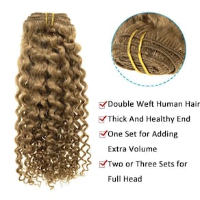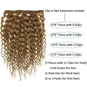 Caliee Faça o melhor clipe encaracolado em extensões de cabelo humano para mulheres. O clipe encaracolado em extensões de cabelo com 100% cabelo humano virgem, é fácil de instalar e é fácil de aplicar com clipes. Você receberá elogios onde quer que vá! - 1.?Extensões de cabelo humano Remy de alta qualidade?As extensões de cabelo encaracolado Jerry são feitas com 100% cabelo humano Remy de cabelo saudável de mulheres jovens. O cabelo é muito natural, grosso e macio. O comprimento é medido com o comprimento do cabelo liso. Pode ser cortado, lavado, tingido, alisado, enrolado. - 2. ?Extensão de cabelo encaracolado Jerry?Jerry Curly é muito bonito e moderno! Todas são extensões de cabelo humano com presilha, o que parece muito natural como o seu próprio cabelo. Muito fácil de usar e remover. - 3. ?Especificações de cabelo encaracolado 3B 3C?O cabelo mede 120 gramas com 7 peças, 17 peças por pacote. 1 pacote pode ser suficiente para adicionar volume. 2 pacotes ou mais de cabelo podem fazer um penteado completo. - 4.?Política de devolução?Não aceitamos motivo para devolução. Mantenha a condição para manter o pacote completo, não utilizado de forma alguma. - 5. ?Cores de cabelo para escolher e aberração cromática?As cores que temos são populares no mercado. Todas as fotos que você vê são tiradas pela Caliee. Devido a diferentes luzes e monitores, a cor exata pode ser ligeiramente diferente da imagem mostrada.