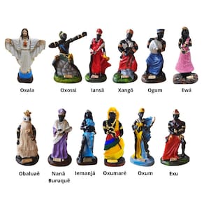 - Oxalá, Oxóssi, Iansã, Xangô, Ogum, Ewá, Obaluaê, Nanã Buruquê, Iemanjá, Oxumaré, Oxum, Exu