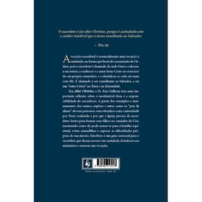 O sacerdote é um alter Christus, porque é assinalado com o caráter indelével que o torna semelhante ao Salvador. Pio XII A vocação sacerdotal é essencialmente uma vocação à santidade, na forma que brota do sacramento da Ordem, pois o sacerdote é chamado, lá onde Deus o colocou, a encontrar, a conhecer e a amar Jesus Cristo no exercício do seu próprio ministério e a identificar-se cada vez mais com Ele. É chamado a ser semelhante ao Salvador, a ser um \"outro Cristo\" na Terra e na Eternidade. Em Alter Christus, o Pe. Ezra Sullivan traz uma importante reflexão sobre o inestimável dom e a responsabilidade do sacerdócio. A partir dos exemplos e ensinamentos dos santos, explora o autor como os \"pais de almas\" devem pastorear seus rebanhos com a autoridade por Deus conferida e por que a Igreja precisa de sacerdotes fortes para formar seus filhos no caminho do Céu, mostrando como ele pode armar-se para a batalha espiritual, evitar armadilhas e superar as dificuldades próprias de sua missão. Este livro é um guia essencial para o sacerdote que deseja crescer em santidade, fortalecer seu ministério e renovar sua vocação.