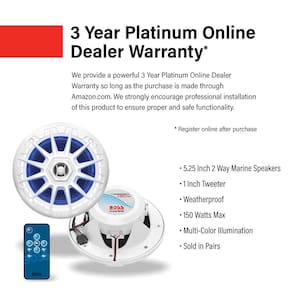 IMPORTANTE: Se for um produto elétrico, ele pode ser compatível com uma tomada de 110 volts. Se utilizado fora dos Estados Unidos, pode ser necessário um conversor de voltagem para garantir a operação adequada. Verifique se o produto que você está comprando é elétrico antes de considerar essas informações. Alto-falantes marinhos BOSS Audio Systems MRGB55W de 5,25 polegadas — à prova de intempéries, 150 watts por par, 75 watts cada, iluminação multicolorida, de ampla variedade completa, bidirecional, vendidos em pares