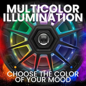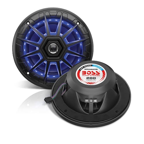 BOSS Audio Systems MRGB65B Alto-falantes estéreo náuticos de 16,5 cm - 200 watts (por par), coaxial, bidirecional, alcance total, 4 Ohms, iluminação multicolorida, à prova de intempéries, vendido em