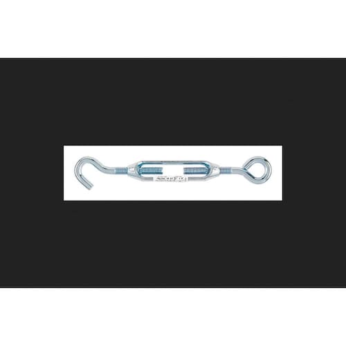Hampton Turnbuckle * Gancho e olho * Diâmetro do fio: .327 * Diâmetro da rosca: 3/8" * Comprimento comprimido: 8 * Comprimento do corpo: 4-1/8" * Profundidade do corpo: 9/16" * Limite de carga de 350 libras * Aço zincado com corpo de alumínio * Referência cruzada nacional nº 221-887